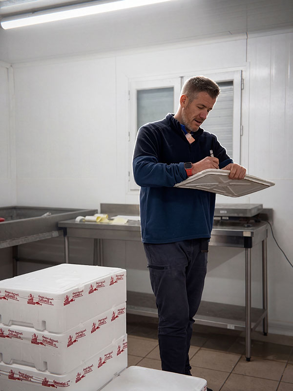 Expert de l’aquaculture, des circuits logistiques et commerciaux, il organise les ventes et les livraisons des poissons et des coquillages, du 1er janvier au 31 décembre, toujours dans la bonne humeur !